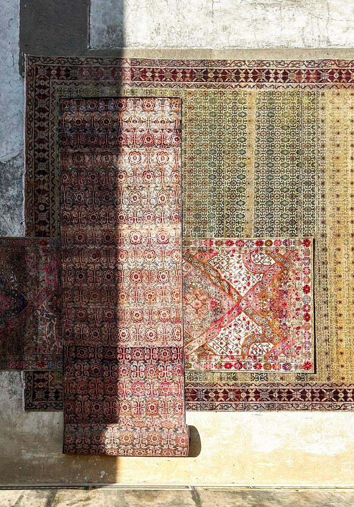 "Colors that ranges from earthy hues to brilliant gems, the rugs infuse a room with a sense of sophisticated rebellion. Nature-inspired motifs are the focal point in lieu of more traditional motifs.”
