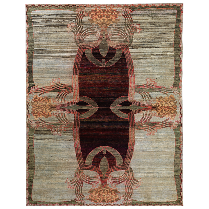 Grey Pink Alchemy Traditional Silk Wool Blend Rug - 8' x 10'6"