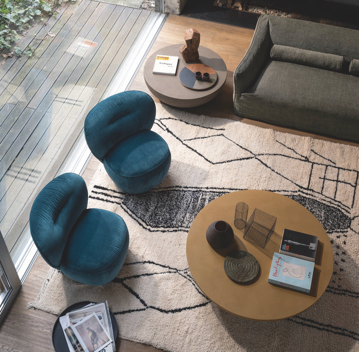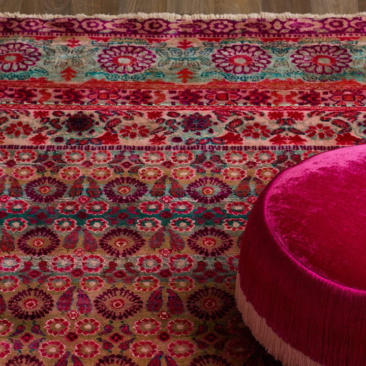 "Colors that ranges from earthy hues to brilliant gems, the rugs infuse a room with a sense of sophisticated rebellion. Nature-inspired motifs are the focal point in lieu of more traditional motifs.”