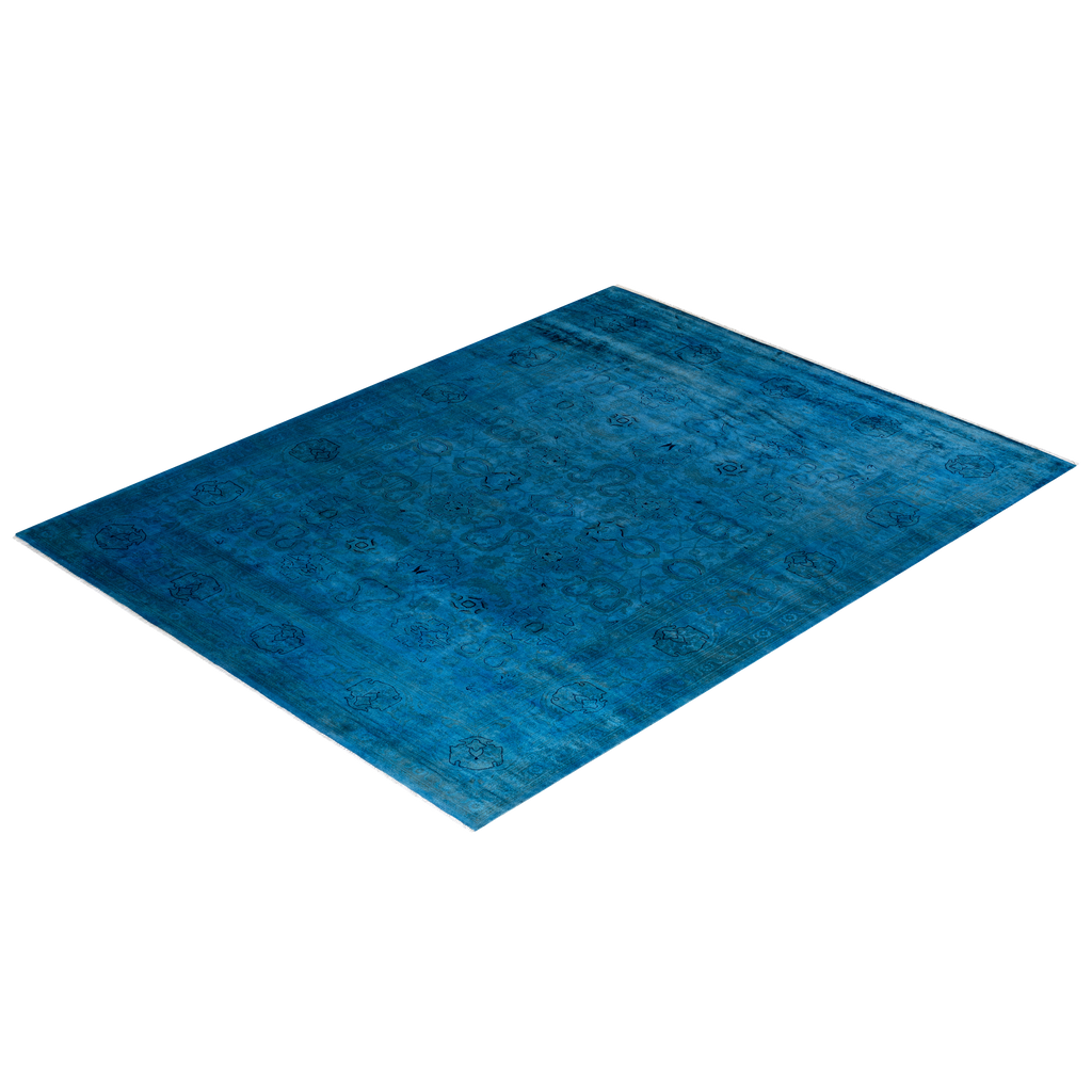 This Deep Blue Overdyed Rug - 8'1" x 10'1" epitomizes classic with a twist: a traditional pattern overdyed in a brilliant blue color. This hand-knotted rug is washed in a 100% natural botanical dye that reveals hidden nuances in the unique designs. This one-of-a-kind overdyed rug transcends trends, and its sturdy construction ensures that it’ll withstand years of heavy traffic. Finished with a traditional fringe.