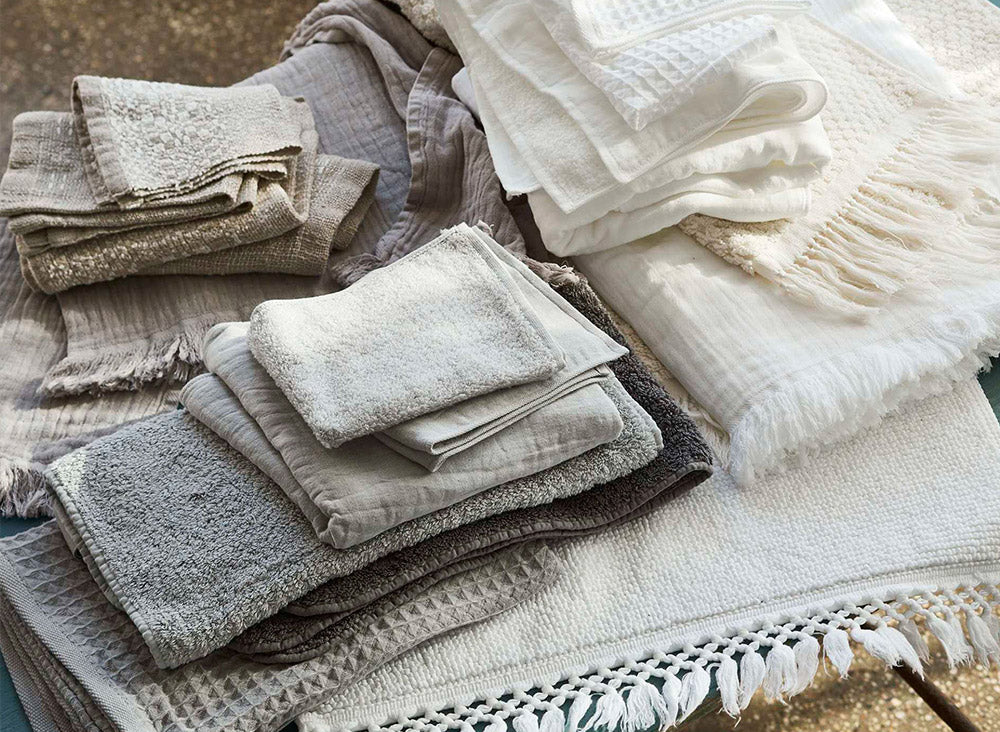 Wrap yourself in comfort with our premium bath linens, plush organic robes + premium bath accessories