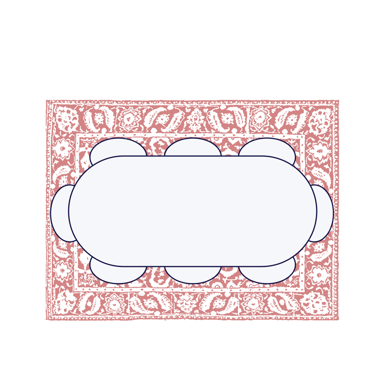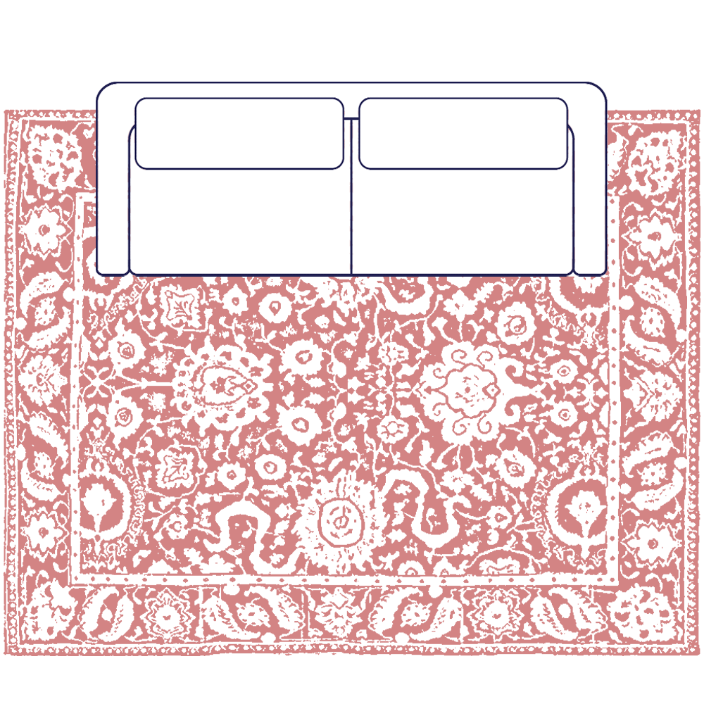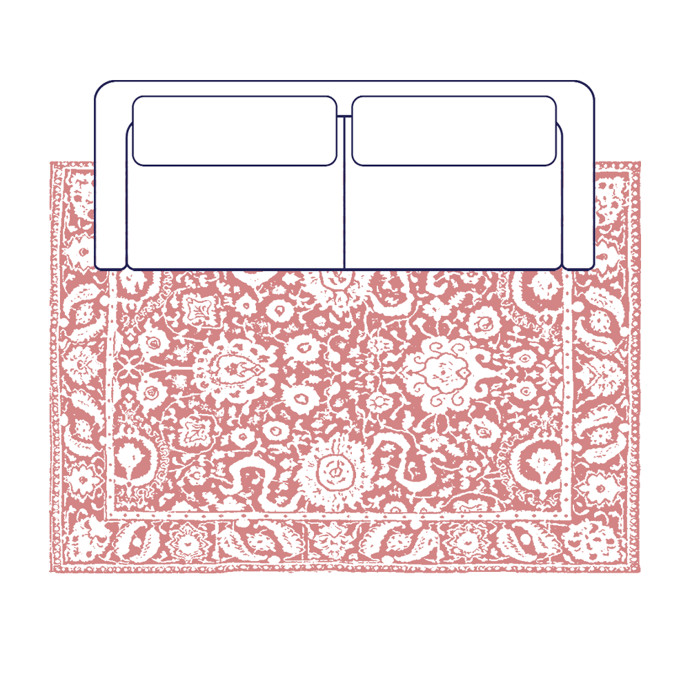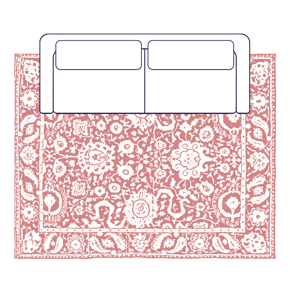 We recommend putting the rug about halfway under your sofa and seating, rather than having it fully on top of the rug.