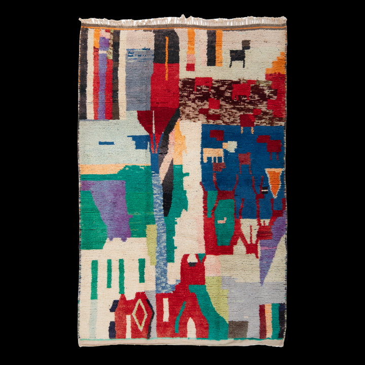 Multicolored Berber Wool Rug - 6'7" x 9'11"