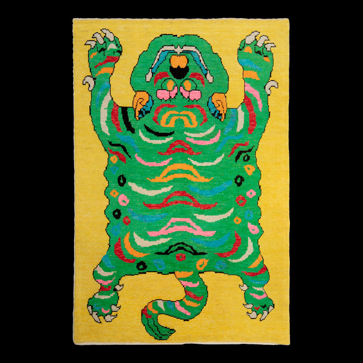 Yellow Contemporary Tiger Wool Rug - 5'5" x 8'2"