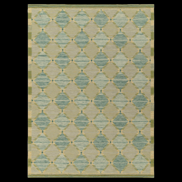 Blue Green Swedish Inspired Flatweave Wool Rug