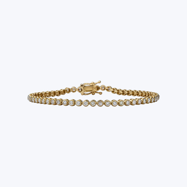 The diamond tennis bracelet in 14K yellow gold is made in Italy and features 1.98 total cts. of diamonds.