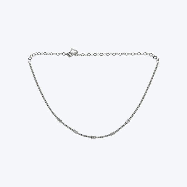 The mixed-cut diamond choker in 14K white gold is made in Italy and features emerald and brilliant-cut diamonds totaling 2.7 total cts.