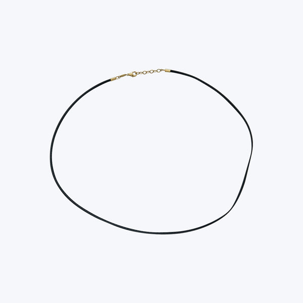The leather cord necklace with 14K yellow gold clasp is made in Italy.