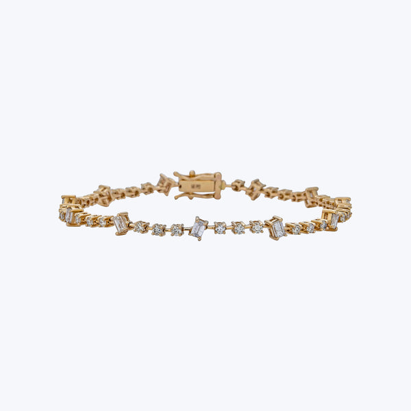 A contemporary take on a beloved classic, the 14K YG Mixed-Cut 2.49 ct. Diamond Tennis Bracelet adds a touch of edgy elegance to your outfit. Designed for an artisanal feel, this beautiful bracelet is crafted in Italy in 14K yellow gold. Part of the abc Classic Collection, merging fine Italian craftsmanship with enduring, understated design.