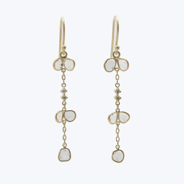 These Long Butterflies Chain Earrings speak to Kothari's passion for antique jewelry retold in a modern, minimalist approach. Handcrafted in California with a reverence for nature + its tiniest wonders, each stone is custom-cut or hand selected and set in 18k gold.