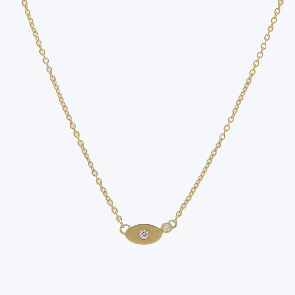 This 18k Oval + Bezeled Dia Inline Necklace speaks to Kothari's passion for antique jewelry retold in a modern, minimalist approach. Handcrafted in California with a reverence for nature + its tiniest wonders, each stone is custom-cut or hand selected and set in 18k gold.
