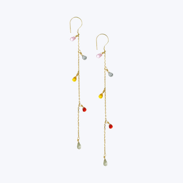 18K Gold Hook Chain Eearring with Mixed Sapphire Drops