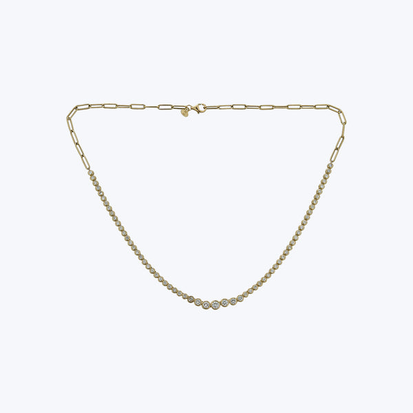 The mixed link graduated brilliant-cut diamond paper clip chain necklace in 14K yellow gold is made in Italy and features 2.57 total cts. of diamonds.
