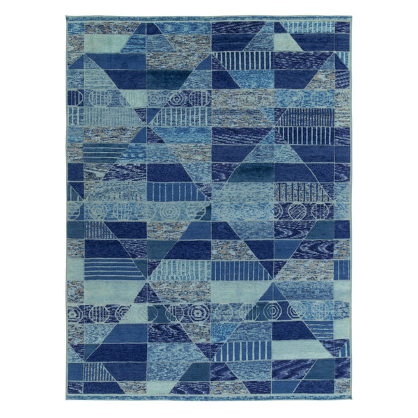 Recapturing acclaimed mid-century modern style, this Blue Modern Wool Rug - 9'10" x 12'4" features a variety of refined geometric patterns in a variety of blue tones. Handwoven from durable wool, this Scandinavian flatweave rug showcases dynamic movement with an all-over design and a high-low textured pile.