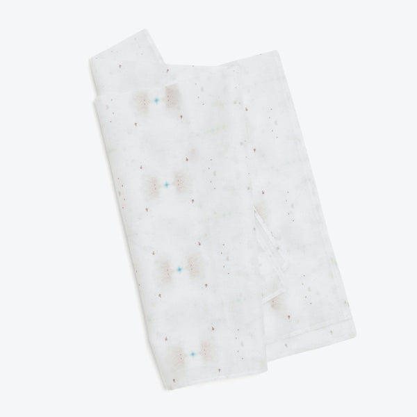 Exclusively at ABC, Eskayel's Astral napkin is inspired by nature. This print mirrors a heaven full of stars, aspiring for a world without light pollution. Delicate watercolor hues quietly balance a soft organic cotton voile. Co-created by ABC and Brooklyn based designer Shanan Campanaro, designs are digitally printed from hand painted illustrations in Italy.