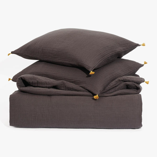 Intricately woven and crafted in Turkey, this all-natural cotton gauze duvet set brings life and texture to the bedroom.Untreated long staple heritage cotton gauze is layered four times to create a texturally rich set of beautiful organic bedding complete with corner accent tassels.