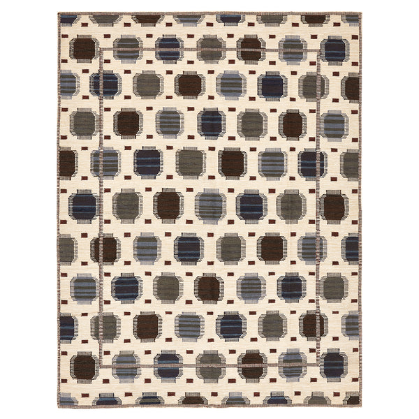 Multicolored Swedish Flatweave Wool Rug - 9' x 12'