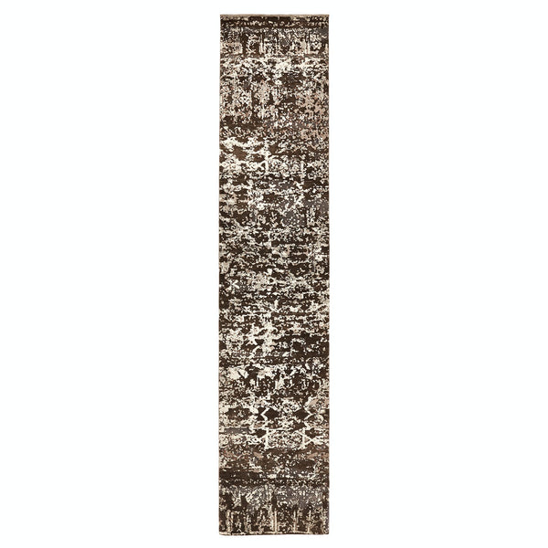This brown wool runner isn't just a rug; it’s a statement. At a sweeping 2 feet 9 inches by 14 feet, it carves out a slice of sophistication for your floors, transforming hallways and elongated spaces with its presence. The rich chocolate hue complements an abstract motif woven with lighter tones, creating a dance of distressed elegance that's unexpectedly polished. It feels both modern and timeless, straddling a fine line between industrial chic and minimalist charm, while silently commanding attention....