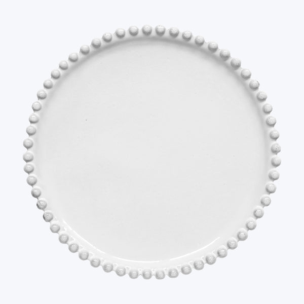 A uniform trim of raised dots brings a touch of whimsy to this piece. Handmade on the Rue St. Honore in Paris, these 18th-century inspired ceramics are crafted in a traditional pottery style passed down from generations. Hand molded from black terracotta, each piece is finished in a milky-white glaze that highlights the unique character of the clay, celebrating its imperfections and ensuring that no two pieces are exactly alike. Romantically bohemian, yet practical for every day use, they are...