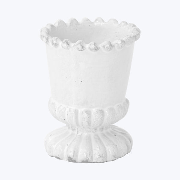 Bring old-world elegance to the table with the Adélaïde Egg Cup by Astier de Villatte. Inspired by 18th-century bubble carafes, this romantic egg cup is trimmed with hand-cut beads that evoke the look of a necklace. Perfect for drawn-out breakfasts or holiday brunches. Handcrafted in black terracotta clay and finished in a white enamel glaze in Astier de Villatte’s ceramics studio in Paris.