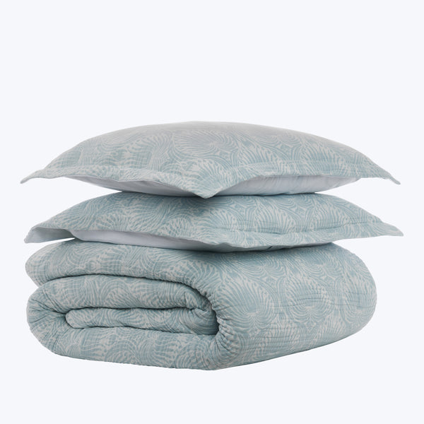 The Adesh Mist Duvet Set is made from 100% cotton. Finished with a misty blue hue and a woven flower motif, it blends texture and design to create unique visual appeal. Featuring a distinct balance of bold and bright from old-world traditions and new-world style, John Robshaw displays an updated spin on traditional, handmade textiles with a vibrant mix of sophistication and romantic allure. Dying, printing, and experimenting alongside the artisans to create these unique fabrics, John Robshaw helps preserve...