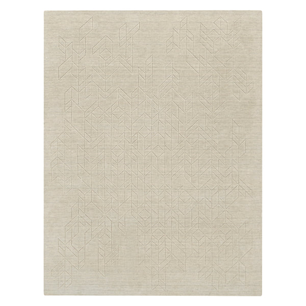 The Solid Essentials Wool Rug from the Rug Essentials collection provides a foundation of comfort and contemporary style. Measuring 7'9" x 9'9", this area rug is designed to define larger spaces such as living rooms, dining areas, or master bedrooms. Crafted in India from 100% European Wool, the rug features a durable, soft pile. Its beige color offers a neutral base adaptable to diverse interior palettes. A subtle, carved geometric pattern is integrated across the surface, creating textural depth with...