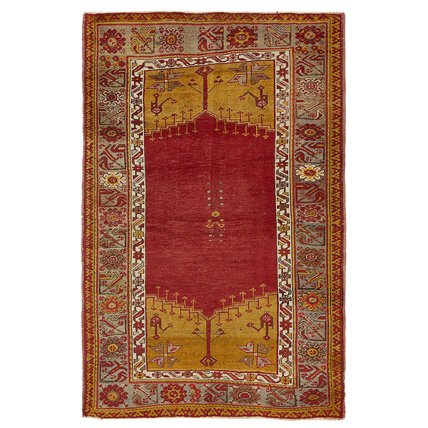 This vintage Anatolian rug was skillfully handwoven from natural, undyed wool by Turkish artisans. With an organic depth and texture, this heirloom-worthy piece is a versatile foundation for contemporary and traditional interiors alike.