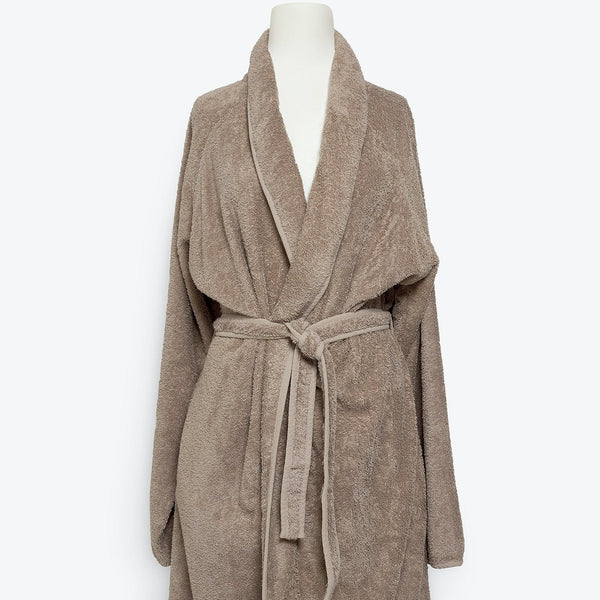 Made from 100% organic cotton and weighing at 340 gsm, this sumptuous and airy bathrobe is detailed with shawl collar and long sleeves for added comfort and ease. Crafted in Denizli, Turkey by a group of textile specialists, each Haman product honors the ancient craft of Turkish textiles and perfects it with modern technology. A soft, looped constitution offers superior absorption while microban technology adds antibacterial properties. Also available in Shell Pink, Vapour, and White with matching towels.