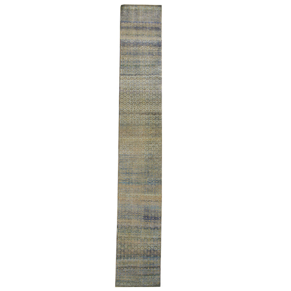 Green Transitional Wool Silk Blend Runner - 3'1" x 20'10"