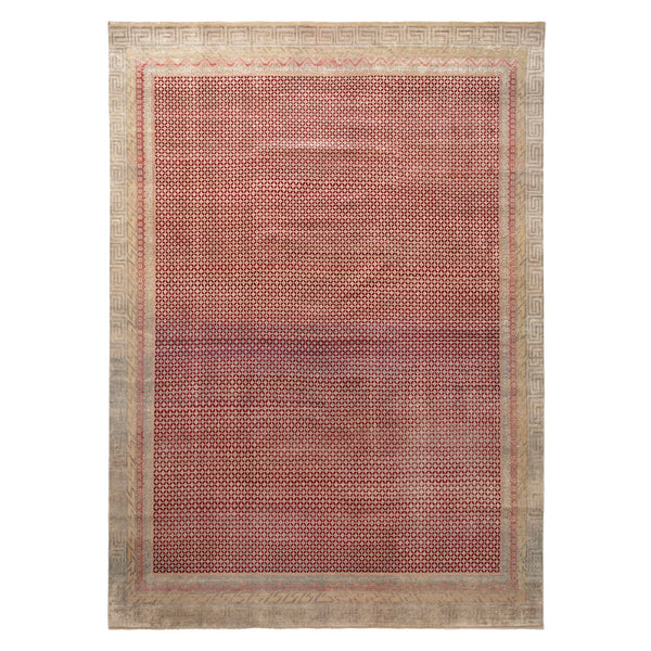 This large transitional area rug, measuring 11'9" x 15'4", features a rich color palette and classic design elements. Designed to complement both modern and traditional interiors, it offers a blend of luxury and durability for significant living spaces. Constructed from a blend of silk and wool, this rug provides a soft underfoot feel with the resilience required for high-traffic areas. The use of silk adds a subtle sheen and depth to the colors, while wool contributes to its strength and...