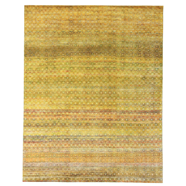 Yellow-Green Transitional Silk Rug - 7'10" x 10'4"
