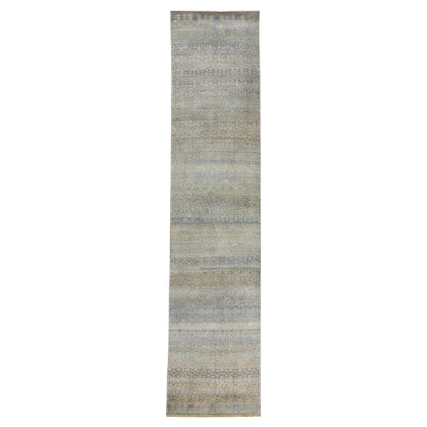 This Grey Alchemy Transitional Runner offers a blend of classic craftsmanship and modern design. Measuring 3 feet by 13 feet 9 inches, this hand-knotted rug provides a durable and stylish accent for various home settings. Crafted in India, this runner combines the strength and resilience of wool with the soft sheen of silk. This material blend results in a rug that is both robust and features a subtle luster, enhancing its visual appeal. The hand-knotted construction signifies a high level...