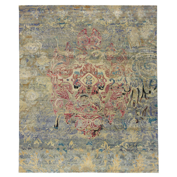 The Multicolored Alchemy Transitional Wool Silk Blend Rug, measuring 7'10" x 9'9", offers a sophisticated foundation for any living space. This transitional rug seamlessly blends classic motifs with a contemporary aesthetic, making it suitable for various decor styles. Its generous dimensions make it an ideal choice for anchoring large areas such as living rooms, dining rooms, or spacious bedrooms. Crafted from a blend of natural wool and luxurious silk, this rug provides both durability and a soft, inviting texture. The...