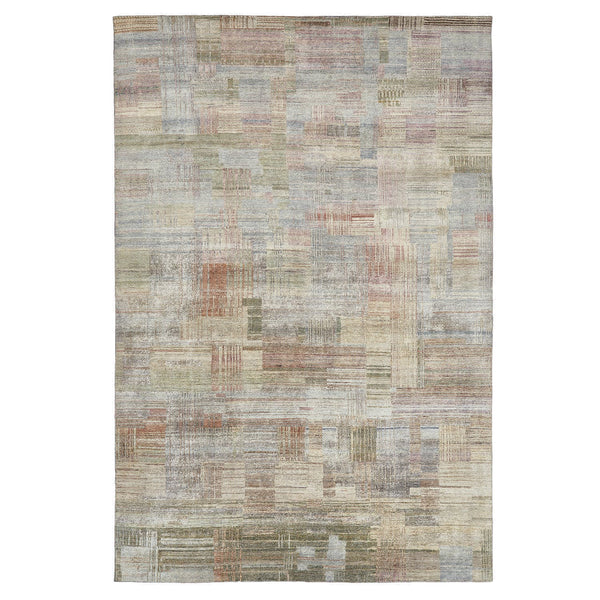 Multicolored Alchemy Transitional Wool Silk Blend Rug - 8'10"x13'3" The Multicolored Alchemy Transitional Wool Silk Blend Rug - 8'10"x13'3" provides a versatile foundation for various interior styles. This large area rug features a transitional design, bridging the gap between classic and contemporary aesthetics with its abstract pattern and diverse color palette. Constructed from a blend of wool and silk, the rug combines the durability and natural resilience of wool with the softness and subtle sheen of silk. This material composition...