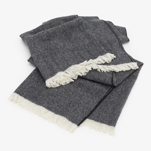 Alpi is made of wool and cashmere: these precious fibers give the throw a softness and warmth making it a practical product to use. The Alpi throw is finished with a small fringe on both sides. Made in Italy.