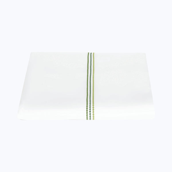 Discover the Amara Triple Pearl Sateen Duvet Cover by Matouk. Crafted in lustrous cotton sateen with a 300 t.c., this refined duvet cover features a trio of delicate embroidered strands in a tonal palette. An elevating addition to understated spaces. Choose from Hazy Pool, Palm Green, and Paradise. Available in Full/Queen and King.