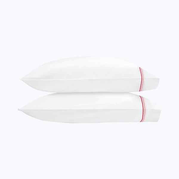 Refresh you sleep space with the Amara Triple Pearl Sateen Pillowcases by Matouk. This refined set is crafted in lustrous 300 t.c. cotton sateen and detailed with a trio of embroidered strands in a tonal palette. Style with the Amara Triple Pearl Sateen Duvet Cover. Choose from Hazy Pool, Palm Green, and Paradise. Available in Standard and King.