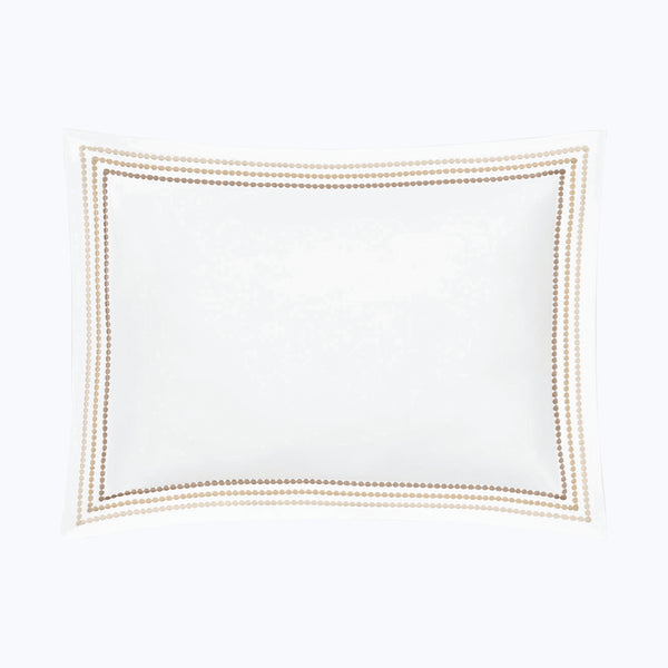 Bring quiet luxury to the bedroom with the Amara Triple Pearl Sateen Sham by Matouk. Crafted in lustrous cotton sateen with a 300 t.c., this refined sham features a trio of delicate embroidered strands in a tonal palette. An elevating addition to understated spaces. Choose from Hazy Pool, Palm Green, and Paradise. Available in Euro, King, and Standard.
