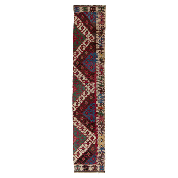 An authentic Red Anatolian Kilim Runner that whispers stories of craftsmanship across generations, stretching 5'6" by 15'5". This piece isn't just a rug but a testament to Turkish artistry. It's ideal for lending character to those grand entranceways and stretches of hallway that beg for something more than emptiness. Hand-woven with the precision and pride of Turkish artisans, this kilim is a reminder of Anatolia's rich tradition of flatweave masterpieces. Made entirely from high-quality wool, it gracefully combines soft texture...