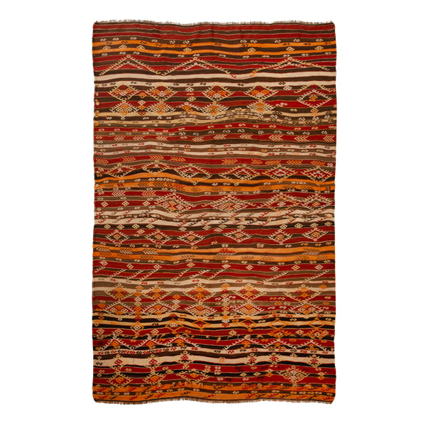 Red & Orange Vintage Flatweave Anatolian Wool Kilim - 6'2" x 9'3"