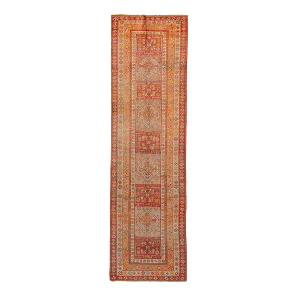 A hand-knotted wool runner unveils its charm with subtle elegance, spanning 3 feet 6 inches by a generous 12 feet. Born from the artisan heart of Turkey, this piece is a testament to the enduring legacy of Turkish rug-making. Its dominant hue—a sumptuous, earthy orange—mingles seamlessly with understated tones of red, beige, and cream, crafting a visually warm palette that invites both the eye and the soul. The choice of wool isn't merely functional; it's transformative. This natural fiber, renowned...