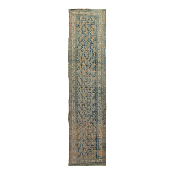 Featuring a multitude of geometric designs in a soft color palette, this Blue and Green Anatolian Wool Runner 3'7" x 16'3" is a work of art with its organic depth and natural texture. This Turkish flatweave runner is crafted in the traditional Anatolian style of weaving with naturally dyed, durable wool. An heirloom-worthy piece, this traditional runner rug is an effortless way to introduce ancient motifs, rich colors, and storied wisdom into a styled space, both modern and traditional alike....
