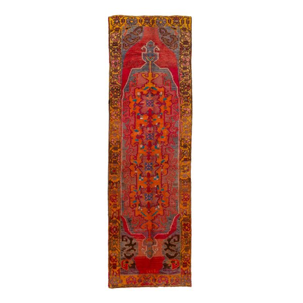 Orange Vintage Traditional Anatolian Wool Rug - 4'2" x 13'9"