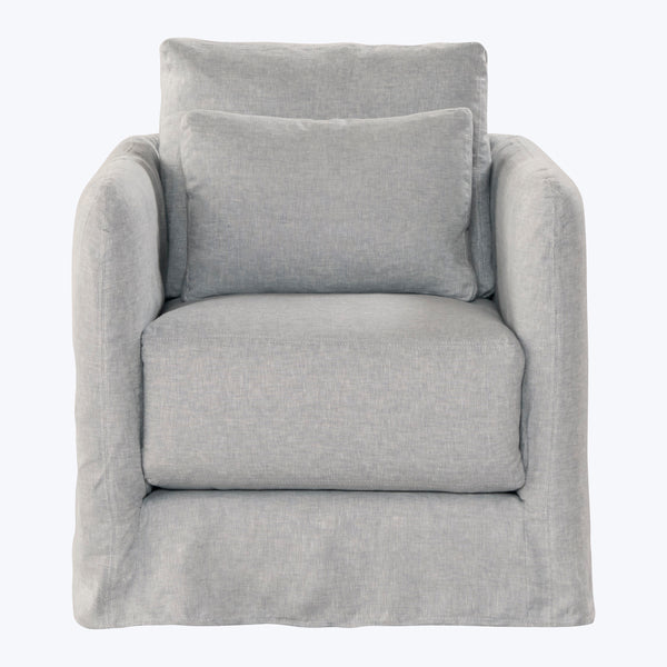 The Anderson Swivel Chair by Cisco Home is where relaxed elegance meets effortless motion. Handcrafted in the USA and slipped in Sommerset Cloud, 100% linen, it invites you to turn toward the conversation, the fire, or the morning light, wherever the moment leads. Its silhouette is clean yet inviting, with deep, soft-fill cushions that cradle you without losing their shape. A webbed seat base supports a single plush seat cushion, while a generously proportioned back cushion offers all-day comfort. The...
