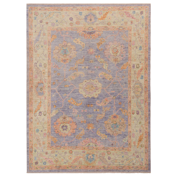 Purple and Cream Oushak Angora Wool Rug - 8' x 9'2"