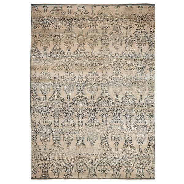 In the expansive dance of interior design, this hand-knotted rug commands attention, yet whispers its presence with elegance. Measuring an impressive 11 feet 9 inches by 16 feet 5 inches, it's tailored for those spaces that demand an anchor—a centerpiece that doesn't just sit, but reigns. With its natural beige foundation, the rug lays the groundwork for sophistication, softened by patterns that hint at a legacy yet feel decisively current with their faded blue-grey and charcoal hues. Crafted in India,...