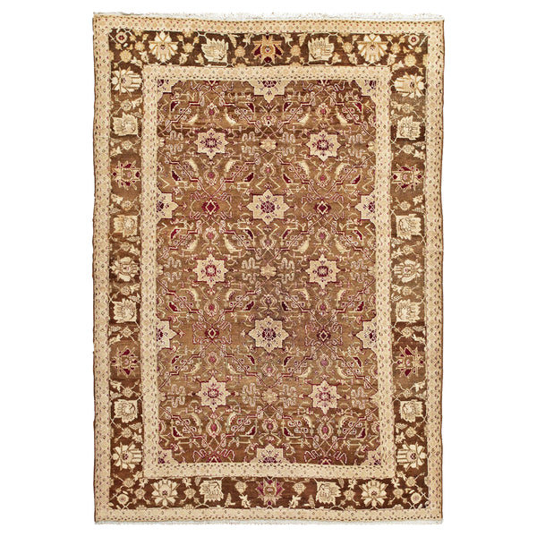 Brown Antique Traditional Indian Agra Rug - 5'9" x 8'5"