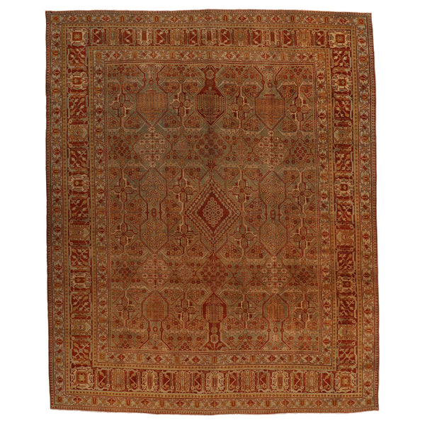 Nothing says luxury like this stunning hand-knotted Antique Tabriz Rug - 10'6" x 13'2". Boasting a traditional, geometric design of exceptional detail and craftsmanship, this one-of-a-kind Persian rug is sure to make a statement in any traditional, transitional, or bohemian home.