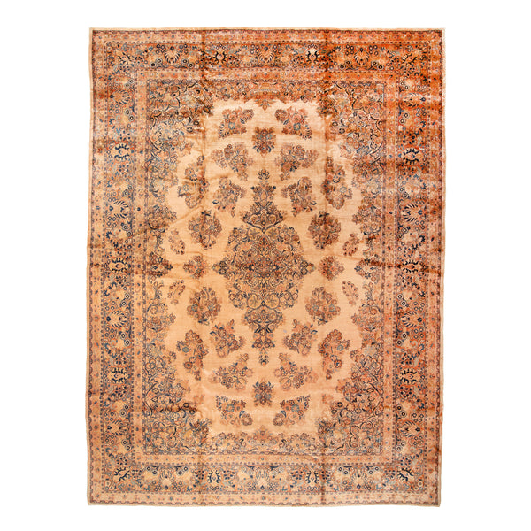 Orange Antique Persian Sarouk Wool Rug - 11'7" x 15'6"