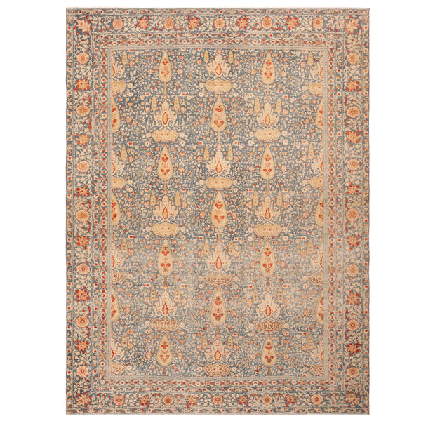 Blue & Red Antique Persian Tabriz Wool Rug - 7'8" x 10'1"